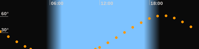 Höchster Stand (Kulmination)19:33 Uhr (h = 61.7°)