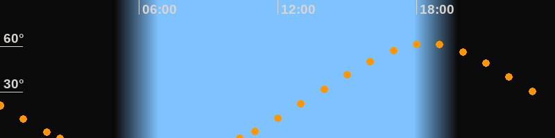 Höchster Stand (Kulmination)18:26 Uhr (h = 61.8°)