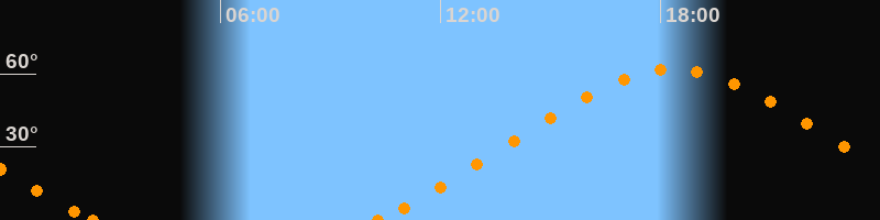 Höchster Stand (Kulmination)18:22 Uhr (h = 61.8°)