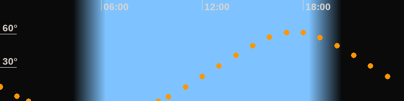Höchster Stand (Kulmination)17:29 Uhr (h = 62°)