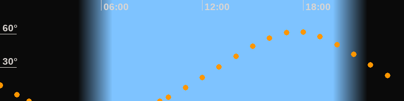 Höchster Stand (Kulmination)17:36 Uhr (h = 62.2°)