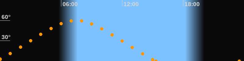 Höchster Stand (Kulmination)07:27 Uhr (h = 59.9°)