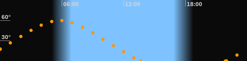 Höchster Stand (Kulmination)05:48 Uhr (h = 59.8°)
