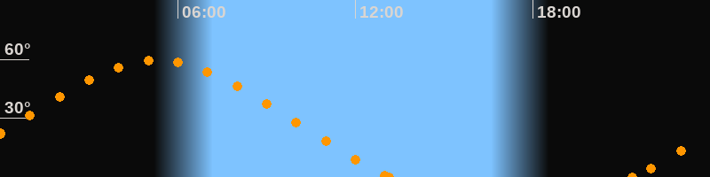 Höchster Stand (Kulmination)05:18 Uhr (h = 59.7°)