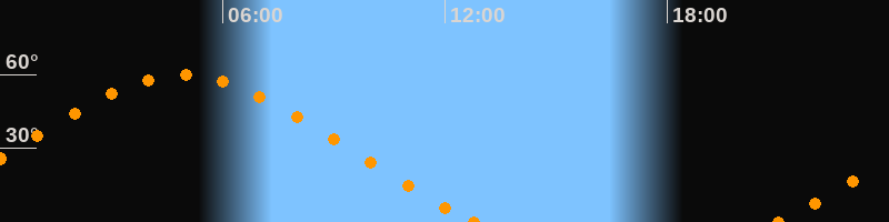 Höchster Stand (Kulmination)04:55 Uhr (h = 59.7°)