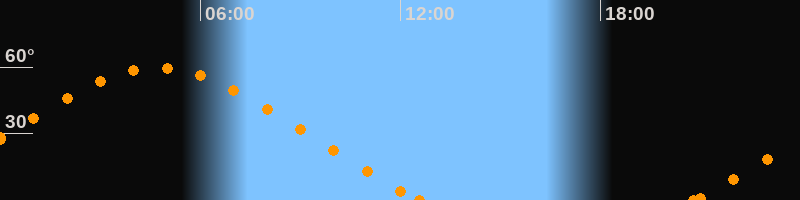Höchster Stand (Kulmination)04:43 Uhr (h = 59.7°)