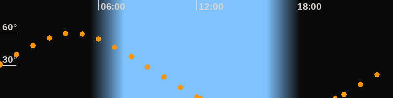 Höchster Stand (Kulmination)04:23 Uhr (h = 59.7°)