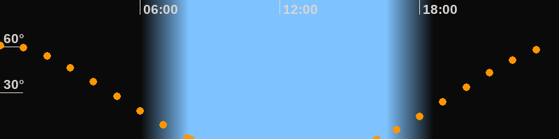 Höchster Stand (Kulmination)00:09 Uhr (h = 60.9°)
