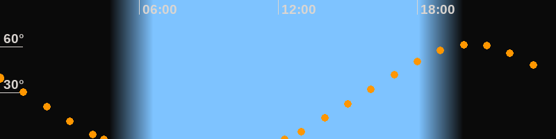 Höchster Stand (Kulmination)20:21 Uhr (h = 61.7°)