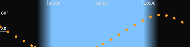 Höchster Stand (Kulmination)20:17 Uhr (h = 61.7°)