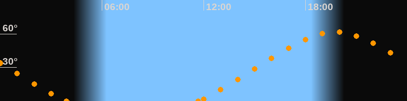 Höchster Stand (Kulmination)19:46 Uhr (h = 61.7°)