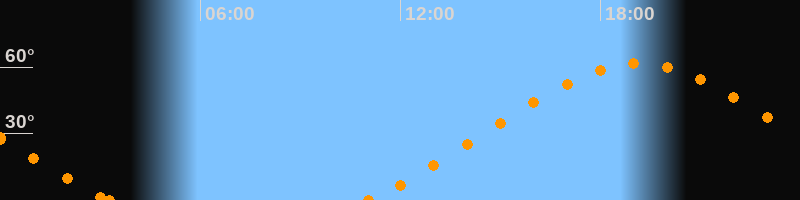 Höchster Stand (Kulmination)19:08 Uhr (h = 61.7°)