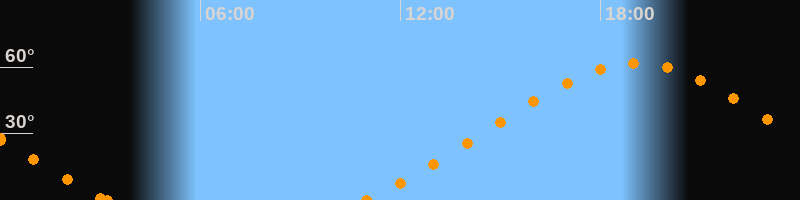 Höchster Stand (Kulmination)19:04 Uhr (h = 61.7°)