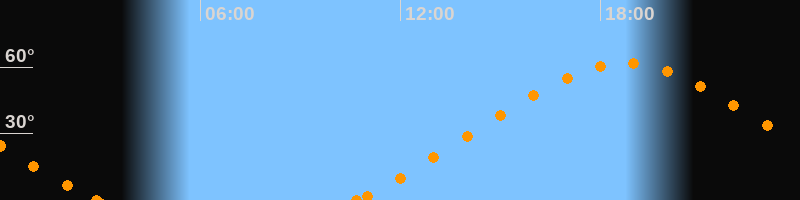 Höchster Stand (Kulmination)18:45 Uhr (h = 61.6°)