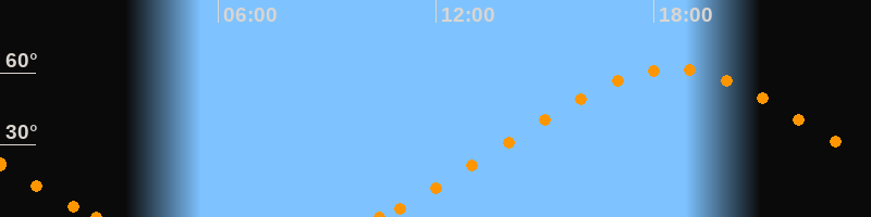 Höchster Stand (Kulmination)18:31 Uhr (h = 61.6°)