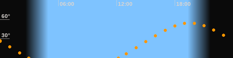 Höchster Stand (Kulmination)19:32 Uhr (h = 54.6°)