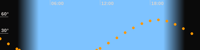 Höchster Stand (Kulmination)18:54 Uhr (h = 54.5°)