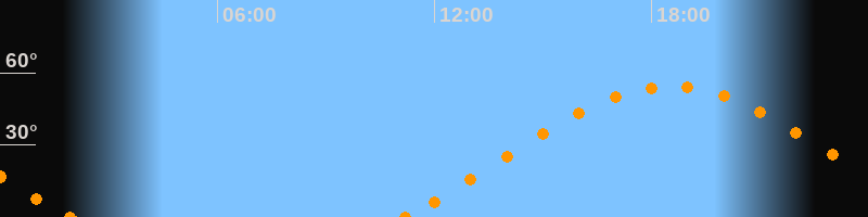 Höchster Stand (Kulmination)18:32 Uhr (h = 54.4°)