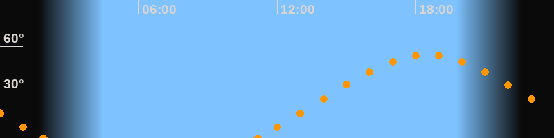 Höchster Stand (Kulmination)18:28 Uhr (h = 54.3°)