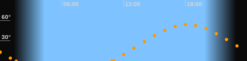 Höchster Stand (Kulmination)18:10 Uhr (h = 54.2°)