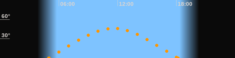 Höchster Stand (Kulmination)11:33 Uhr (h = 46.3°)