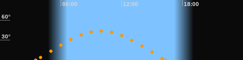 Höchster Stand (Kulmination)09:55 Uhr (h = 43.8°)