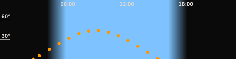 Höchster Stand (Kulmination)09:46 Uhr (h = 43.6°)
