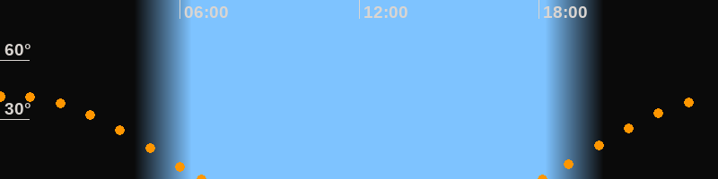 Höchster Stand (Kulmination)00:24 Uhr (h = 41.9°)