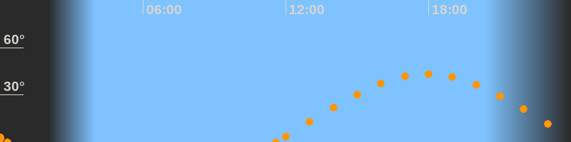 Höchster Stand (Kulmination)17:56 Uhr (h = 43.2°)