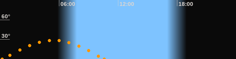 Höchster Stand (Kulmination)05:25 Uhr (h = 28.6°)