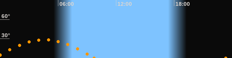 Höchster Stand (Kulmination)04:35 Uhr (h = 28.6°)