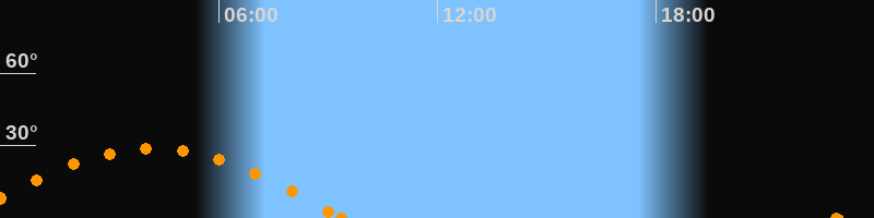 Höchster Stand (Kulmination)04:11 Uhr (h = 28.6°)