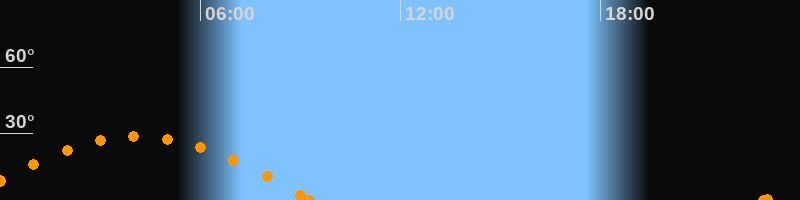 Höchster Stand (Kulmination)04:07 Uhr (h = 28.6°)