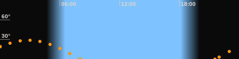 Höchster Stand (Kulmination)02:49 Uhr (h = 29°)