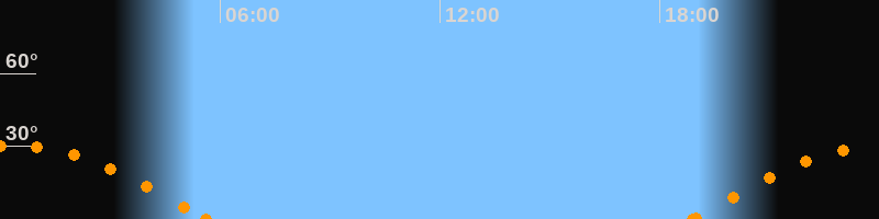 Höchster Stand (Kulmination)00:13 Uhr (h = 30.4°)