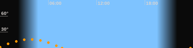 Aufgang23:41 Uhr im Südosten (αAz = 127.2°)