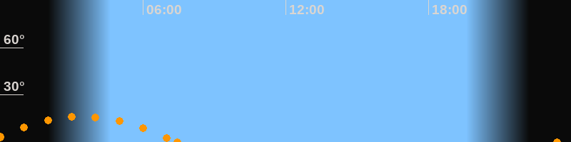 Aufgang23:24 Uhr im Südosten (αAz = 127.2°)
