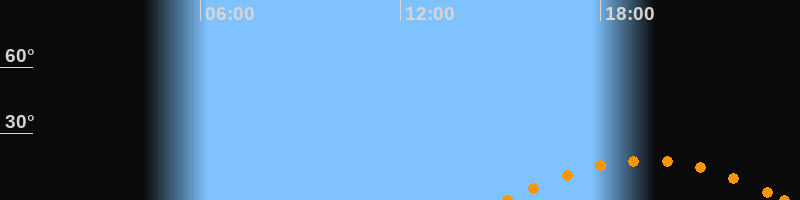 Untergang23:32 Uhr im Südwesten (αAz = 235.7°)