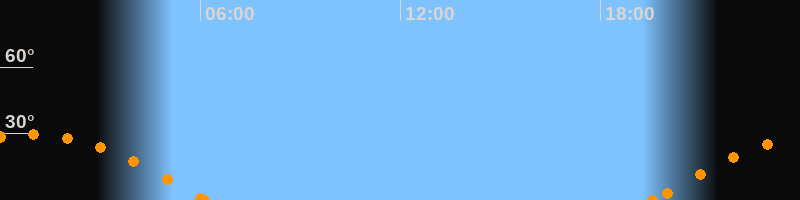 Höchster Stand (Kulmination)00:49 Uhr (h = 29.6°)