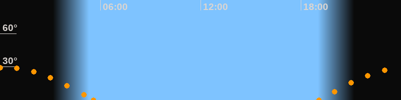 Höchster Stand (Kulmination)00:18 Uhr (h = 29.2°)
