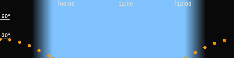 Höchster Stand (Kulmination)00:09 Uhr (h = 29.1°)