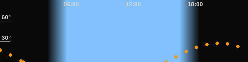 Höchster Stand (Kulmination)21:07 Uhr (h = 27.6°)