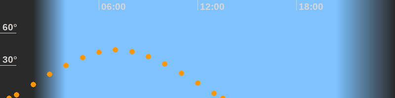 Höchster Stand (Kulmination)07:04 Uhr (h = 44.3°)