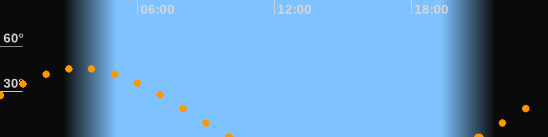 Höchster Stand (Kulmination)03:31 Uhr (h = 45.3°)