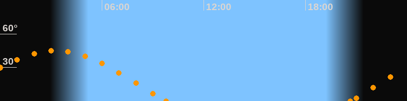 Höchster Stand (Kulmination)03:15 Uhr (h = 45.2°)