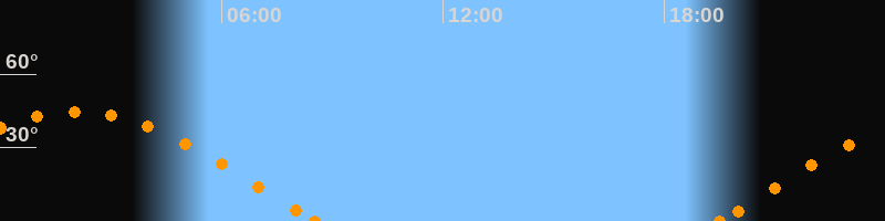 Höchster Stand (Kulmination)02:03 Uhr (h = 44.7°)