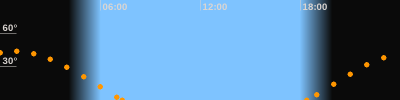 Höchster Stand (Kulmination)00:49 Uhr (h = 43.9°)