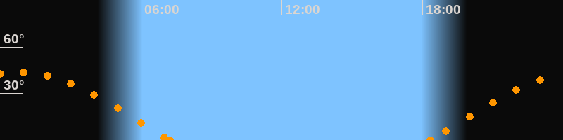 Höchster Stand (Kulmination)00:45 Uhr (h = 43.8°)