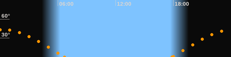 Höchster Stand (Kulmination)00:14 Uhr (h = 43.5°)