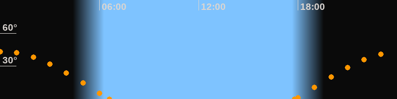Höchster Stand (Kulmination)00:10 Uhr (h = 43.4°)